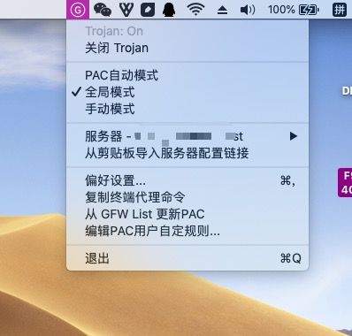 - 运行trojanX,会在任务栏产生 G 圆圈的图标