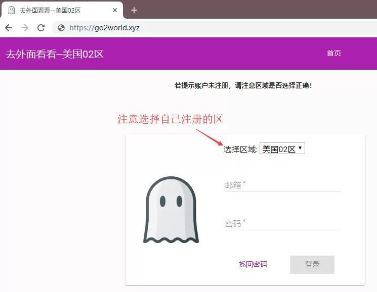 登录ss/ssr服务提供商: https://go2world.tk
